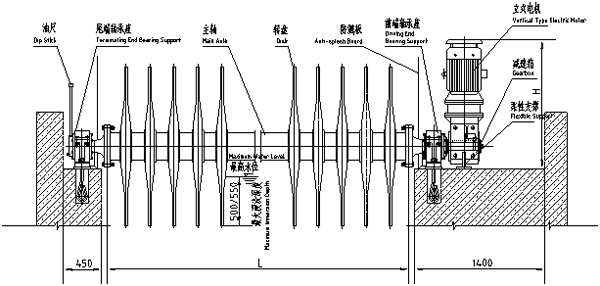 曝氣轉(zhuǎn)盤水平跨度:≤9m(根據(jù)用戶要求)