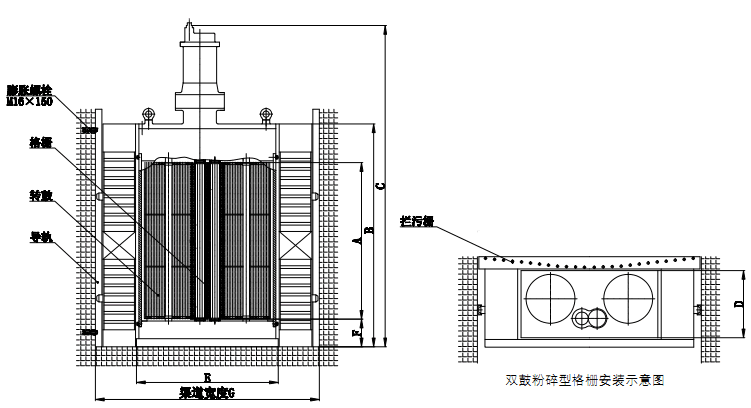 雙轉鼓粉碎型格柵除污機采用雙鼓結構,是格柵除污機的一種,又叫破碎型格柵除污機,是市政、水利、泵站系統除污設備,能將污水管網中的末片、空瓶、布片等雜物垃圾進行粉碎,以保護泵站的設備使其正常運轉。粉碎性格柵除污機能把污水中的懸浮和漂浮垃圾分碎成6-10mm的細小顆粒,粉碎后的污物無需打撈,直接隨污水流走。粉碎型格柵泵站設備能全部安裝在地下水池內,水池頂部封閉,這種泵站大大改變了傳統泵站的工作環境差、噪音大、建設成本高、運行費用大等缺陷,粉碎型格柵真正意義上實現了全地埋無人值守。